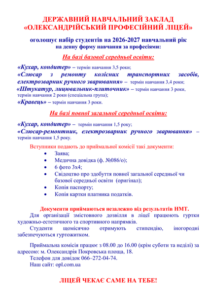 "Олександрійський професійний ліцей"