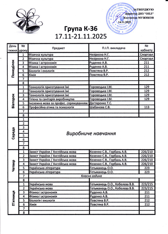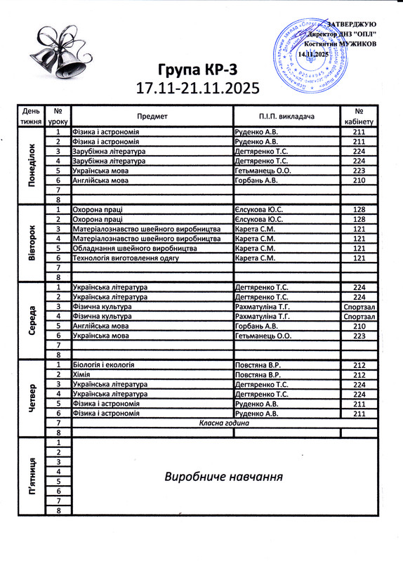 Наказ директора ДНЗ ОПЛ “Про затвердження положення про внутрішню систему забезпечення якості освіти”