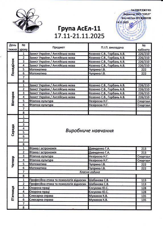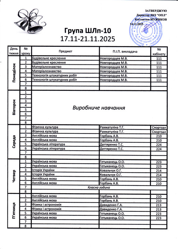 Навчально-практичний центр за професіями «Слюсар-ремонтник», «Слюсар механоскладальних робіт», «Слюсар-інструментальник», «Слюсар з ремонту дорожньо-будівельних машин та тракторів», «Слюсар з ремонту колісних транспортних засобів», «Слюсар з ремонту сільськогосподарських машин та устаткування»