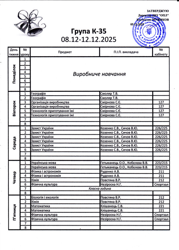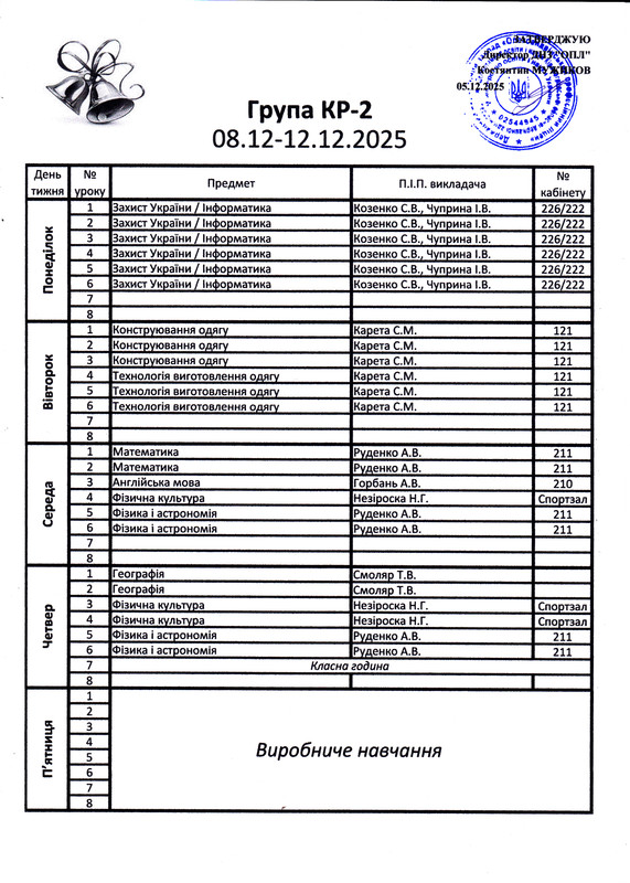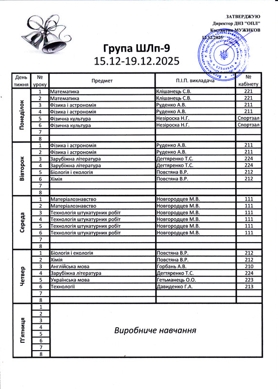Розклад уроків