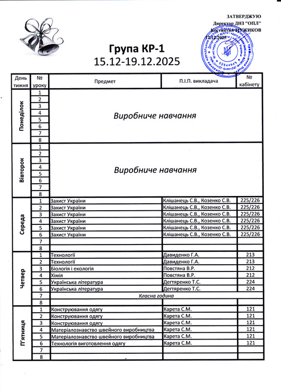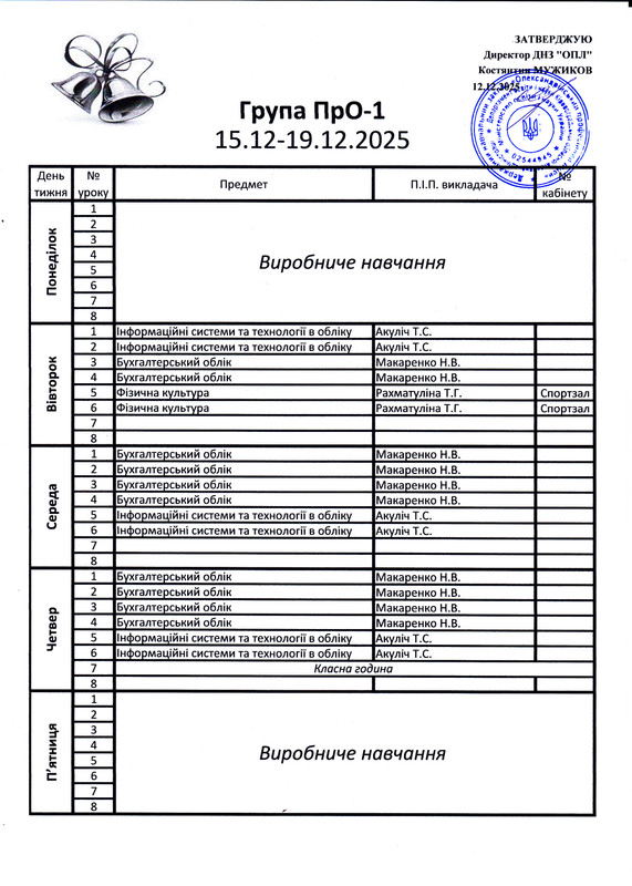 Наказ директора ДНЗ ОПЛ “Про затвердження положення про внутрішню систему забезпечення якості освіти”
