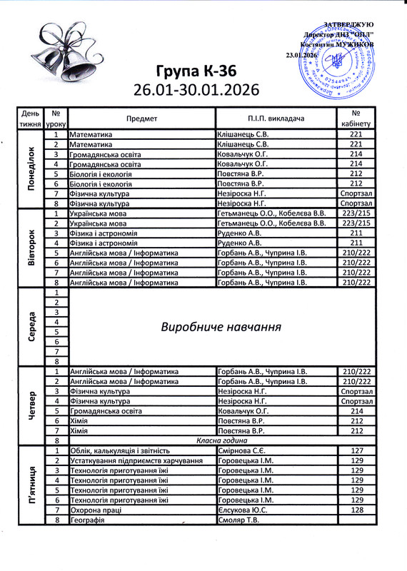 Наказ директора ДНЗ ОПЛ “Про затвердження положення про внутрішню систему забезпечення якості освіти”