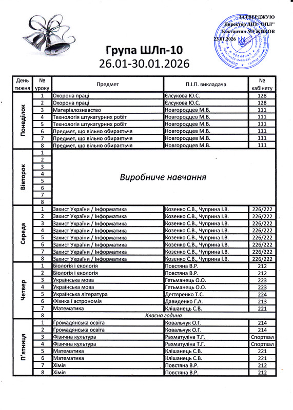 Навчально-практичний центр за професіями «Слюсар-ремонтник», «Слюсар механоскладальних робіт», «Слюсар-інструментальник», «Слюсар з ремонту дорожньо-будівельних машин та тракторів», «Слюсар з ремонту колісних транспортних засобів», «Слюсар з ремонту сільськогосподарських машин та устаткування»