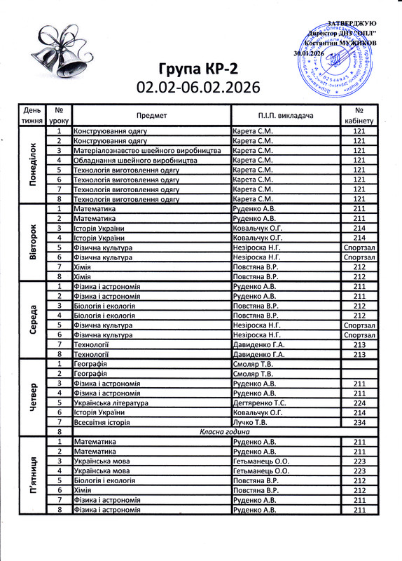 Розклад уроків