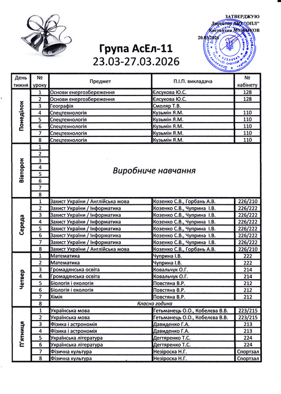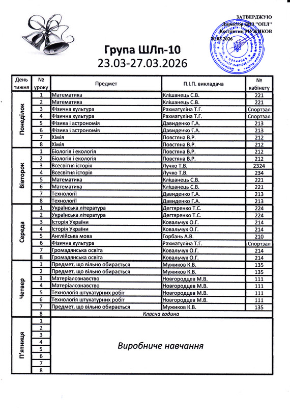 Розклад уроків