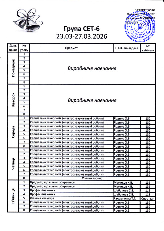 Розклад дзвінків