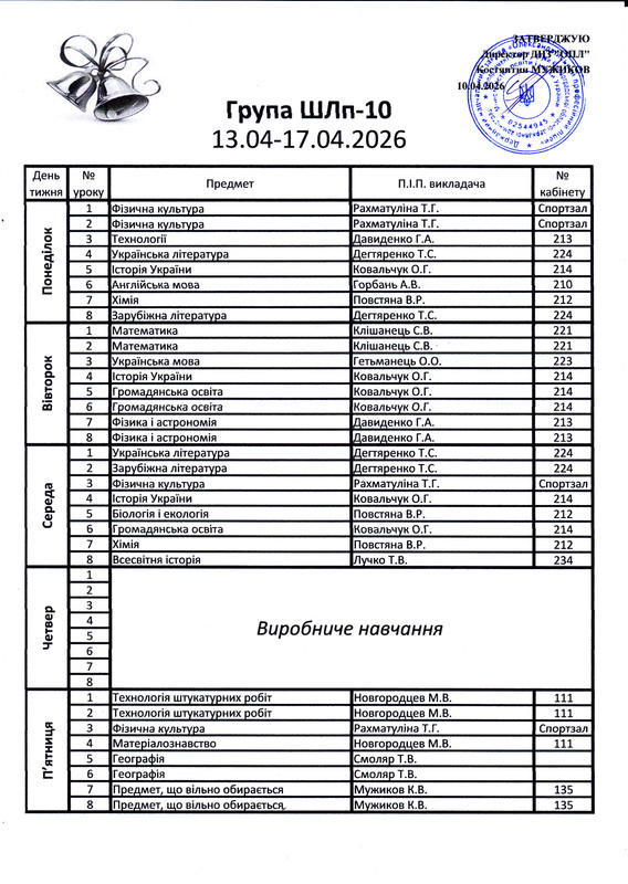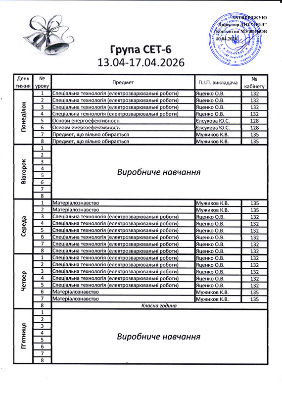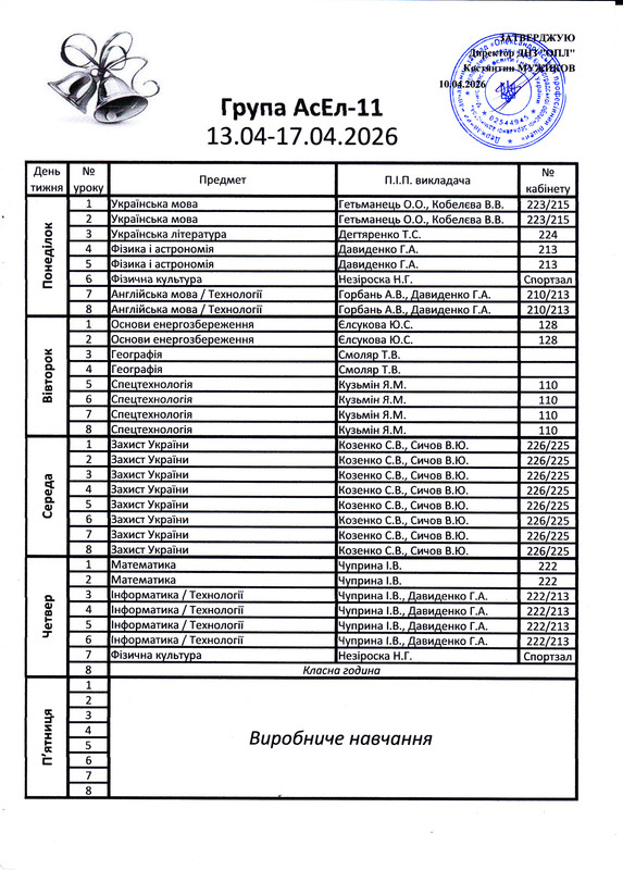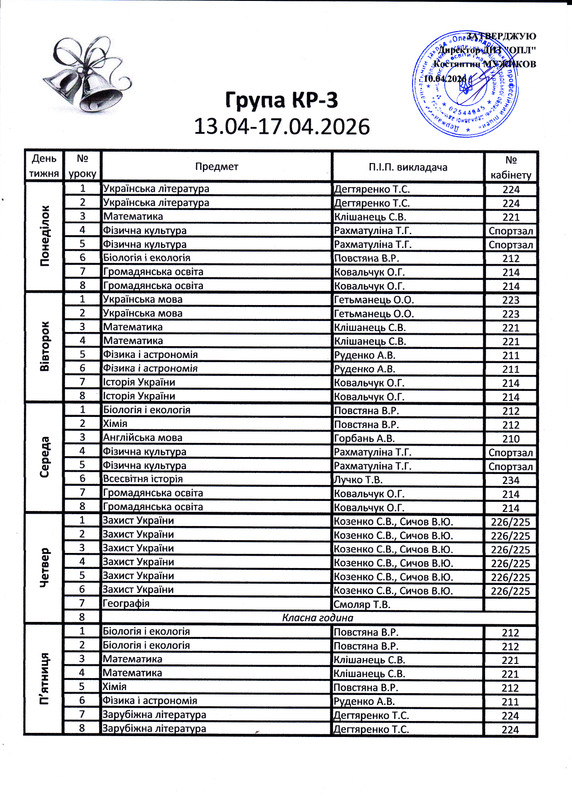 Розклад дзвінків
