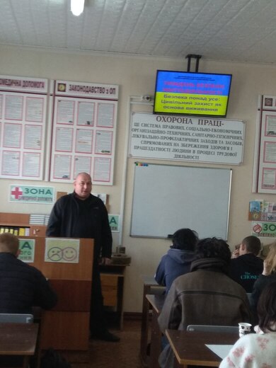 Цьогоріч значну увагу приділили теоретичній підготовці до евакуації. Разом із Юрченком Ю.В., майстром виробничого навчання Олександрійських територіальних курсів ЦЗ та БЖД 3 категорії, ліцеїсти детально розібрали алгоритм дій у разі транспортної аварії з викидом хімічних речовин. Ми крок за кроком проаналізували маршрути руху, правила використання засобів захисту дихання та специфіку поведінки під час хімічної загрози. Такий формат дозволив кожному спокійно поставити запитання, візуалізувати свій шлях до безпечного місця та зрозуміти, що в реальній ситуації головним ворогом є не час, а паніка.