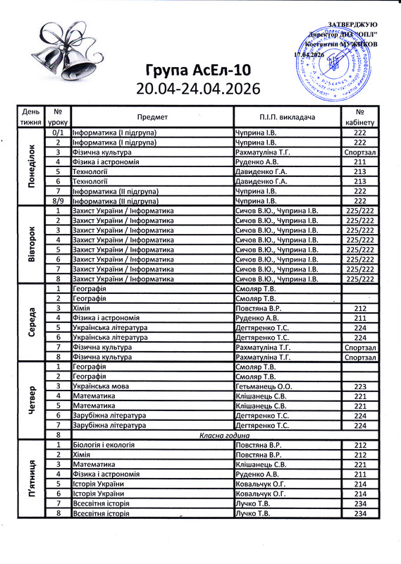 Розклад дзвінків