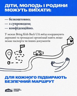 Якщо ви тільки плануєте виїзд — звертайтеся. У межах ініціативи Bring Kids Back UA допомагають виїхати безкоштовно, конфіденційно та з повним супроводом — навіть якщо немає документів. Для кожного підбирають безпечний маршрут.