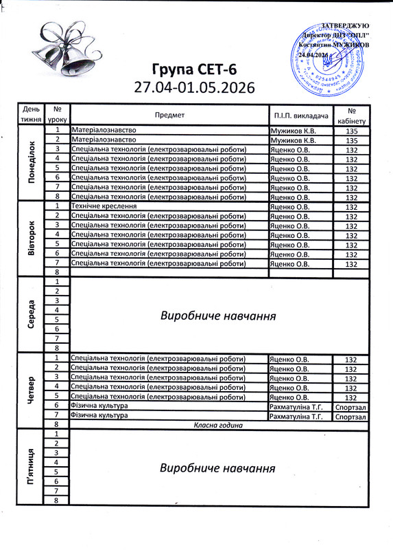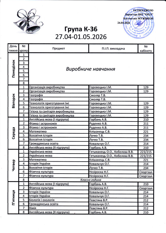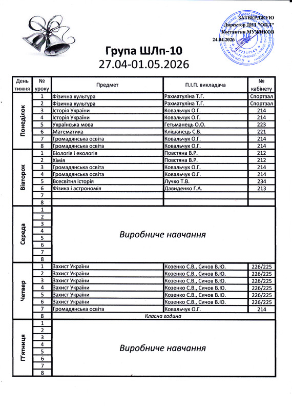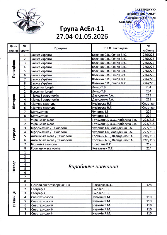 Розклад дзвінків